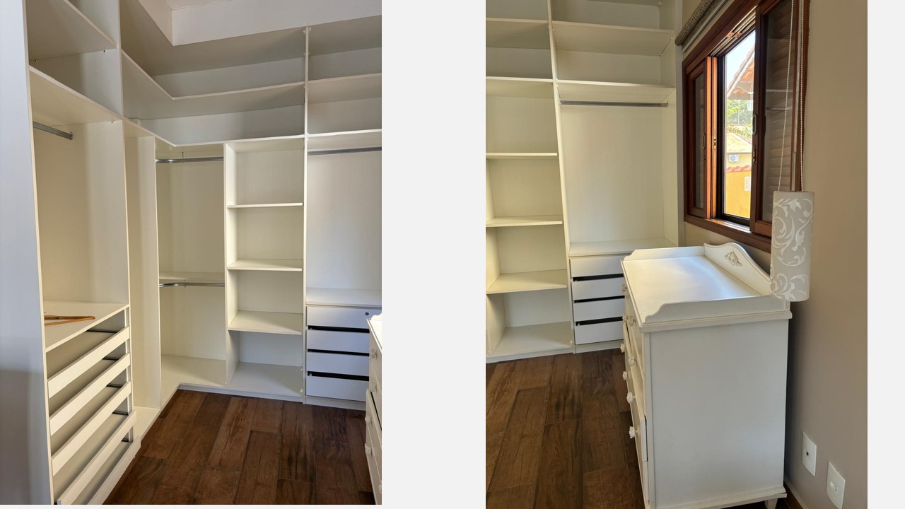- Armários embutidos na cozinha e na suíte, otimizando espaço e organização.
